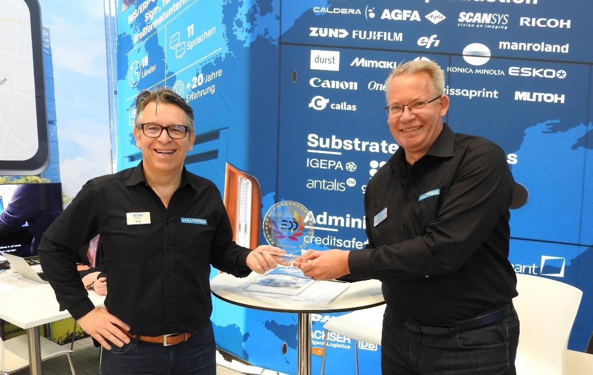 ‘Een award en veel internationale leads voor onze grootformaat software.’ Voor Dirk Deroo en Robert Hartman van Dataline, waartoe ook Multipress behoort, was de signbeurs Fespa in München een succesvolle actie.