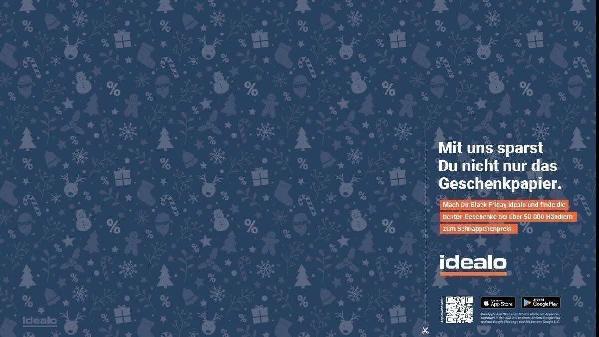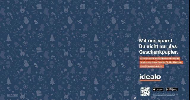 De Duitse prijsvergelijkingssite idealo.de begrijpt wat mensen nu, in de aanloop naar Black Friday, het meest nodig hebben: inpakpapier. Daarom verspilde Idealo de ruimte niet met reclameboodschappen, maar boekte een spread-advertentie in de krant Bild.